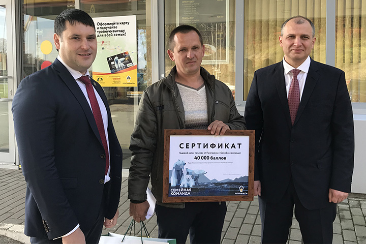 12 октября 2017 г. на автозаправочном комплексе НК «Роснефть» на острове Русском состоялось торжественное поздравление пятимиллионного участника программы лояльности «Семейная команда». Юбилейный участник Алексей Наговицын получил 40 000 баллов на карту лояльности для приобретения 1000 литров топлива.