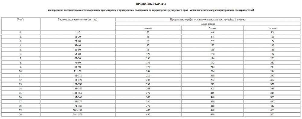 Вице-губернатор Антон Волошко подписал постановление «Об утверждении предельных тарифов на перевозки пассажиров железнодорожным транспортом в пригородном сообщении на территории Приморского края». Как стало известно KONKURENT.RU, новые ставки начнут действовать с 1 января 2020 г.