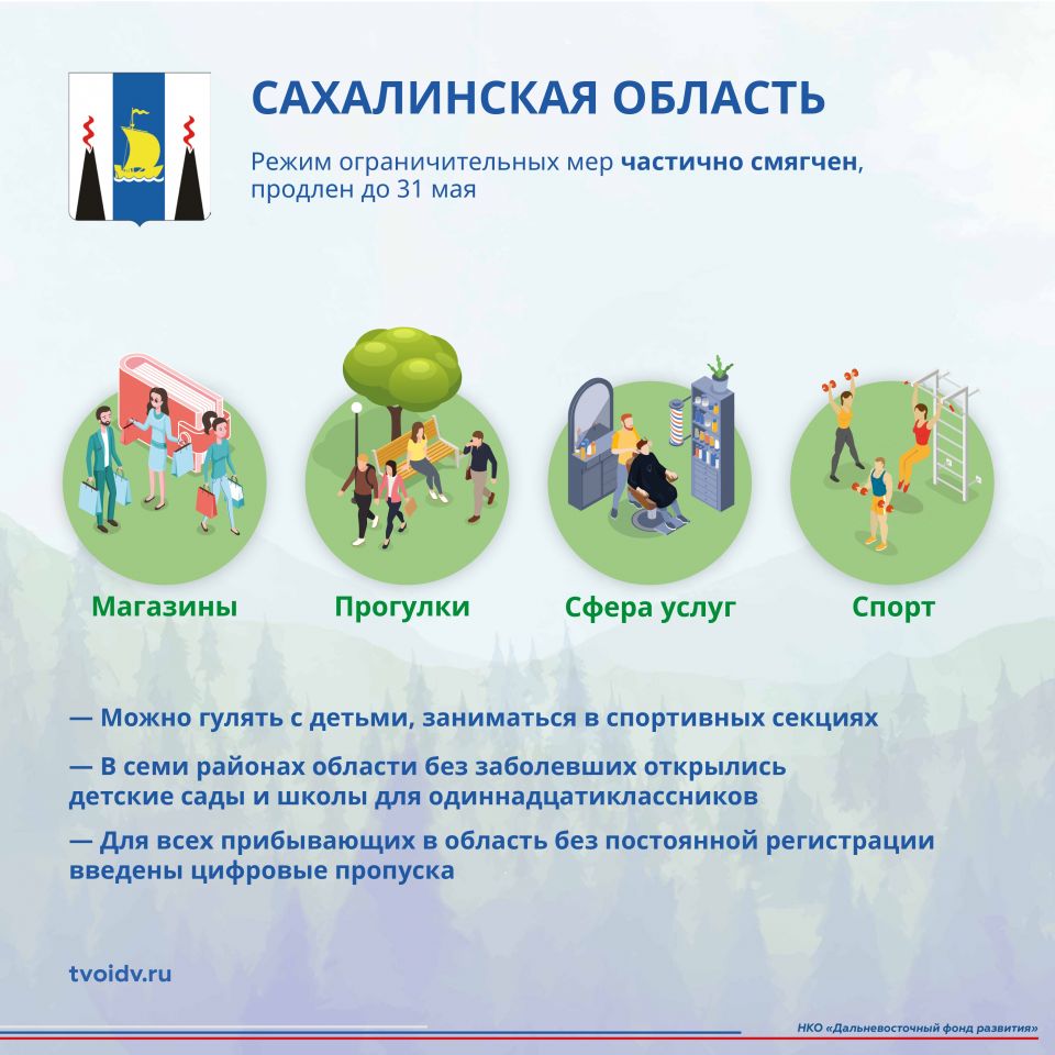 В Сахалинской области всего коронавирусом заразились 44 человека, при этом 25 болезнь уже победили, а умерших не зарегистрировано по состоянию на 14 мая. И все же режим самоизоляции не стали отменять и в этом регионе. В некоторых районах старшеклассники уже смогли вернуться в школы, а для детей работают детские сады. Нет запрета для прогулок и занятий спортом.