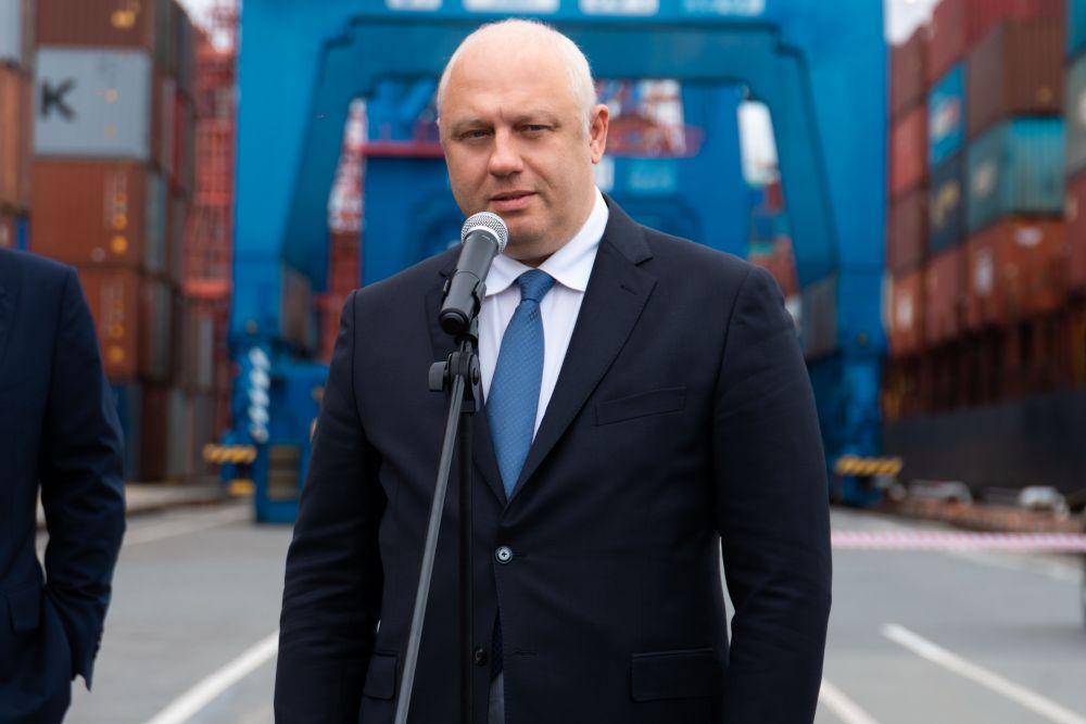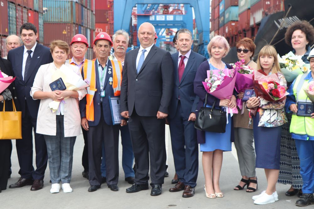 Роман Кухарук начал торжественную церемонию с поздравления в адрес сотрудников порта. По его словам, именно слаженные усилия коллектива способствовали тому, что порт занял первое место по обработке контейнерных грузов в стране в прошлом году.
