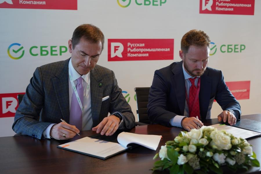 На Восточном экономическом форуме Русская рыбопромышленная компания (РРПК) и Сбер заключили соглашение о намерении финансирования строительства четырех больших морозильных рыболовецких траулеров в объеме 400 млн долларов США. Документ подписали председатель совета директоров ООО «Русская рыбопромышленная компания» Глеб Франк и первый заместитель председателя правления Сбербанка Александр Ведяхин.