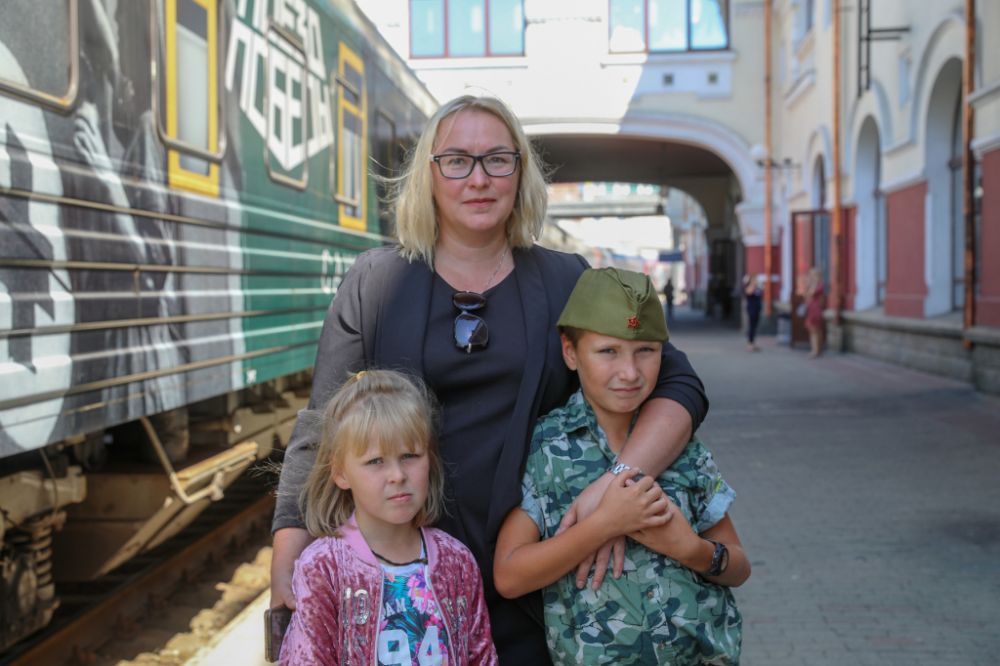 Жительница Владивостока и ее двое маленьких детей пришли посмотреть экспозицию об одной из самых трагичных страниц истории нашей страны – Великой Отечественной войне. Ольга рассказала, что давно хотела попасть на «Поезд Победы» и в итоге осталась очень довольна выставкой: