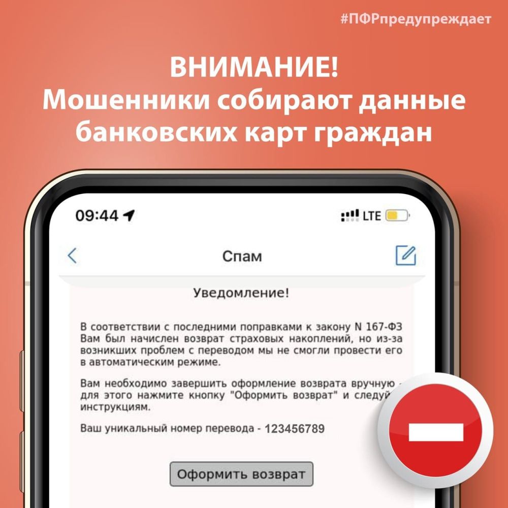 «Не нажимайте кнопку «Оформить возврат». Не заполняйте данные своих банковских карт на неизвестных сайтах. В противном случае вы можете стать жертвой мошенников», – говорится в сообщении ПФР.