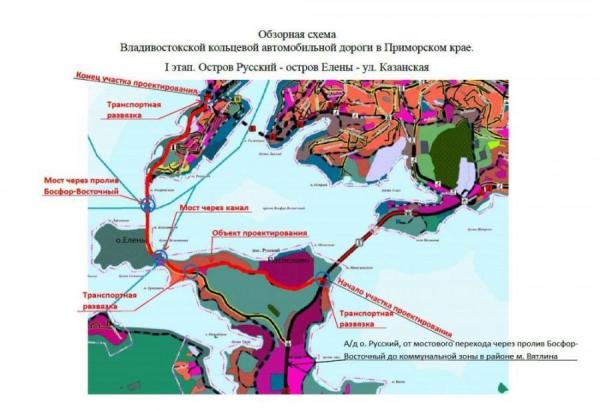 Первый этап ВКАД предполагает строительство дороги от моста на остров Русский до района пересечения улиц Казанской и Верхнепортовой. Объект включает в себя транспортные развязки на Университетском проспекте вблизи моста на остров Русский и к поселку Канал. Кроме того, планируется строительство мостов, один из которых соединит остров Елены с Русский островом, а другой – протяженностью 2 км – перекинется через пролив Босфор Восточный.
