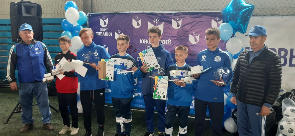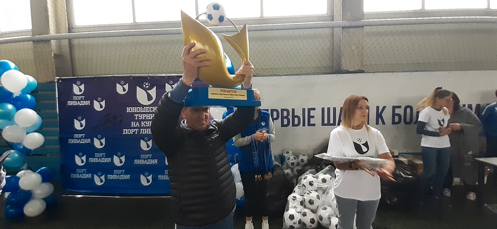Владимир Абдулхаков и его заместитель по производству Сергей Князев искренне поздравили всех участников с завершением юношеского турнира и вручили ребятам соответствующие награды, а также раздали от спонсора каждому игроку по сувенирному футбольному мячу с автографом рекордсмена мира по футболу Виктора Царева и логотипом «Порта Ливадия», а также по памятному подарку.