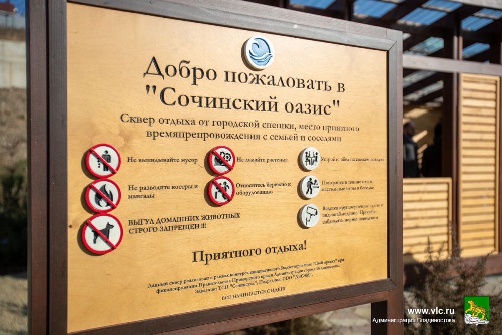 Как рассказали в мэрии, участком для нового сквера стал пустырь, расположенный в районе дома № 3 на улице Сочинской. Новое место для отдыха появилось здесь благодаря активным действиям и инициативе местных жителей, поддержке администрации Владивостока и финансовому гранту правительства Приморского края, который смогли выиграть активные члены ТОС «Патрокл – Сочинская».