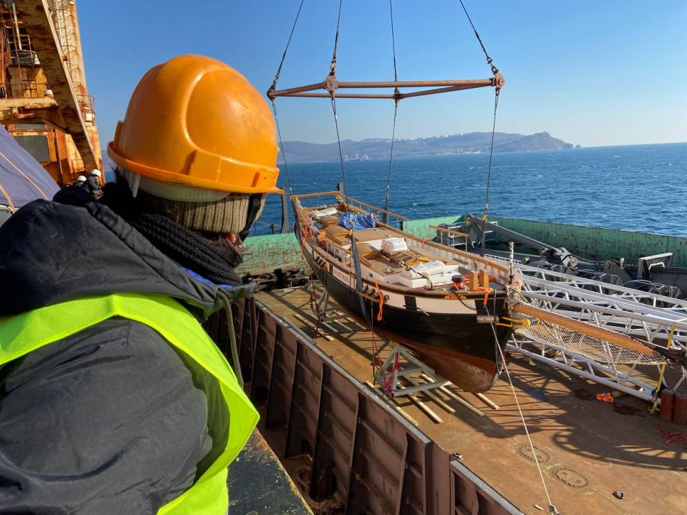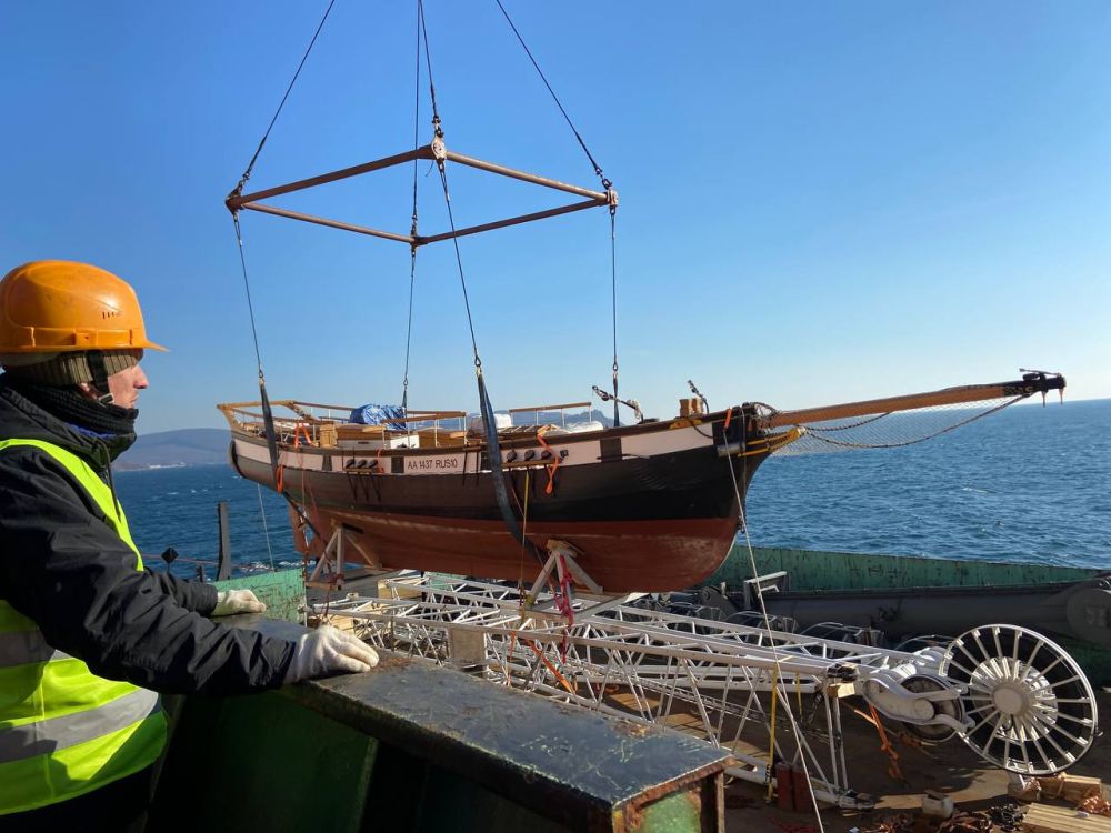 Как сообщил начальник службы безопасности мореплавания АО «Терминал Астафьева» Виталий Альбрандт, учебная шхуна была выгружена специалистами компании на рейде Находки с атомного лихтеровоза после завершения рейса из Санкт-Петербурга по Северному морскому пути. И на барже «Терминала Астафьева» доставлена в порт Владивосток.