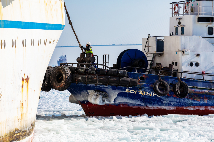Так, в начале года буксиры FESCO Портофлот пробивали путь судам в акватории бухты Золотой Рог, которая впервые за 5 лет покрылась льдом. Во Владивостоке были рекордные морозы. 23 января температура воздуха обновила исторический минимум, столбик термометра опустился до – 27,6 С°. Тогда буксир «Добрыня» спас из ледового плена иностранные суда Safe и Asia Star.