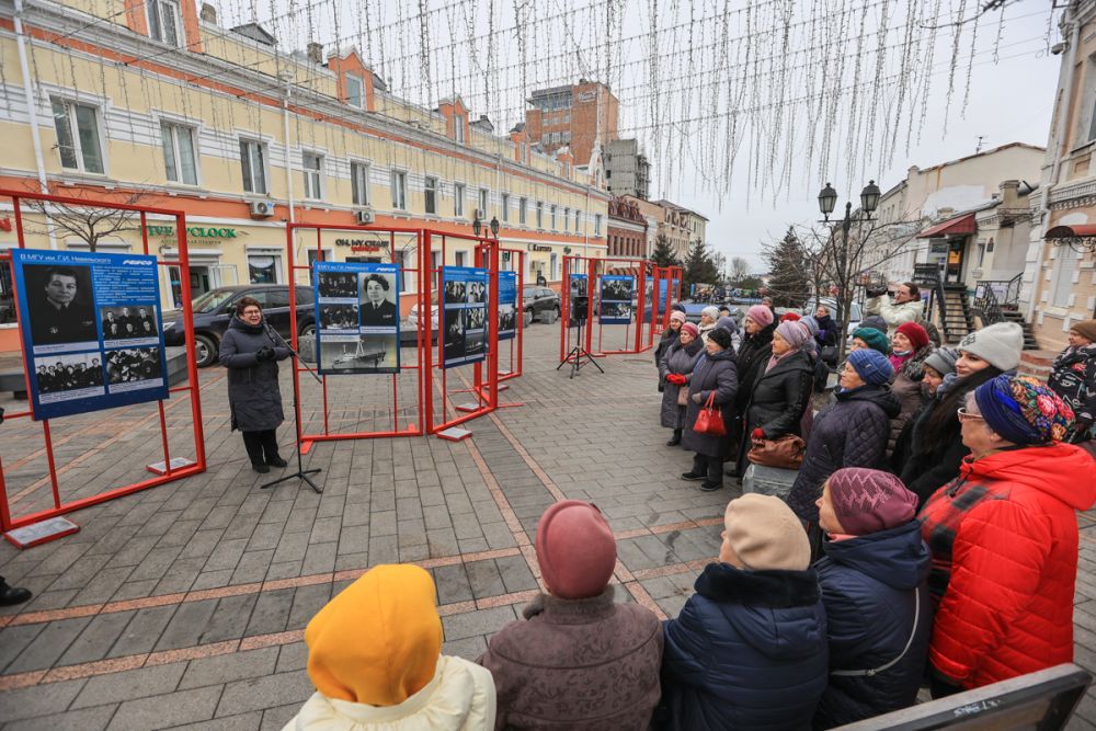 Открытие выставки состоялось на улице Адмирала Фокина. Мероприятие собрало множество гостей и заинтересованных прохожих, которые с интересом рассматривали подробную экспозицию о жизни и работе Анны Щетининой.