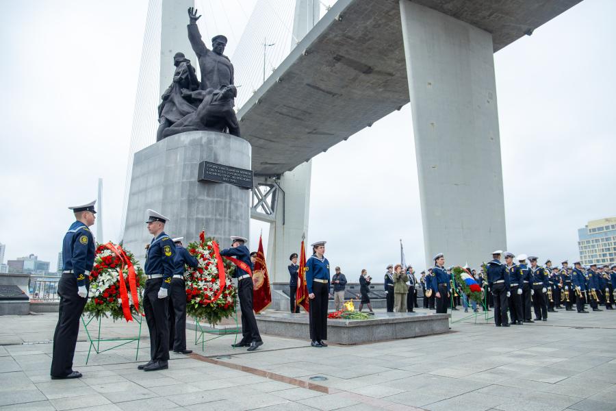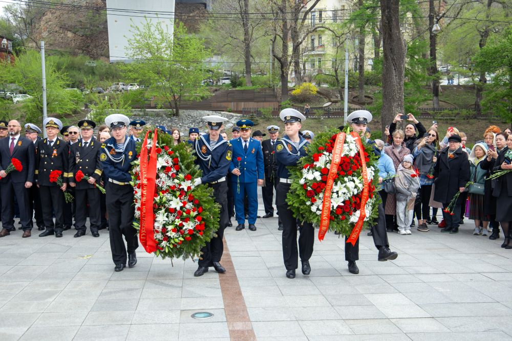 Сотрудники и ветераны Транспортной группы FESCO, курсанты Морского государственного университета им. адмирала Г. И. Невельского, официальные лица, жители и гости города возложили венки и цветы. Мероприятие традиционно открыло серию торжеств во Владивостоке, посвященных празднованию Дня Победы.