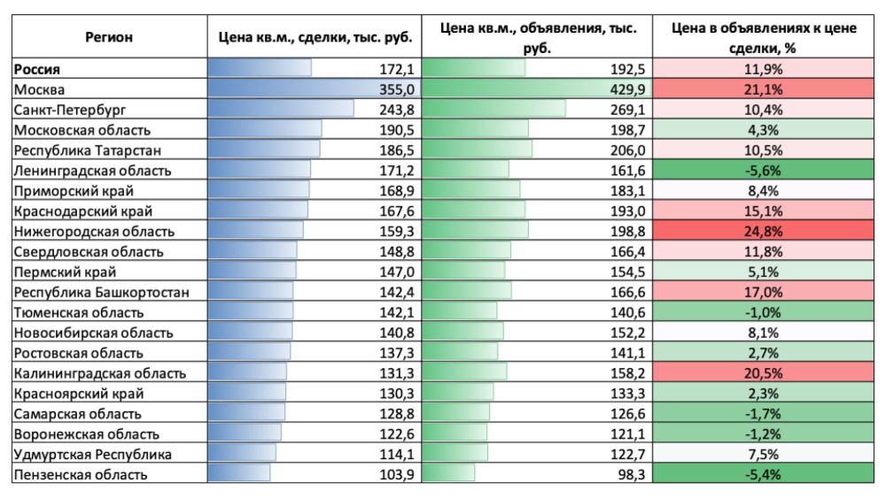Сравнение данных ЦФА и «Домклик» показало, что в феврале различие между ценой кв. м в объявлениях и сделках на первичном рынке РФ сократилось и составило 11,8% (против 12,6% в феврале). В Приморье данная разница составляет 8,4% (см. таблицу).