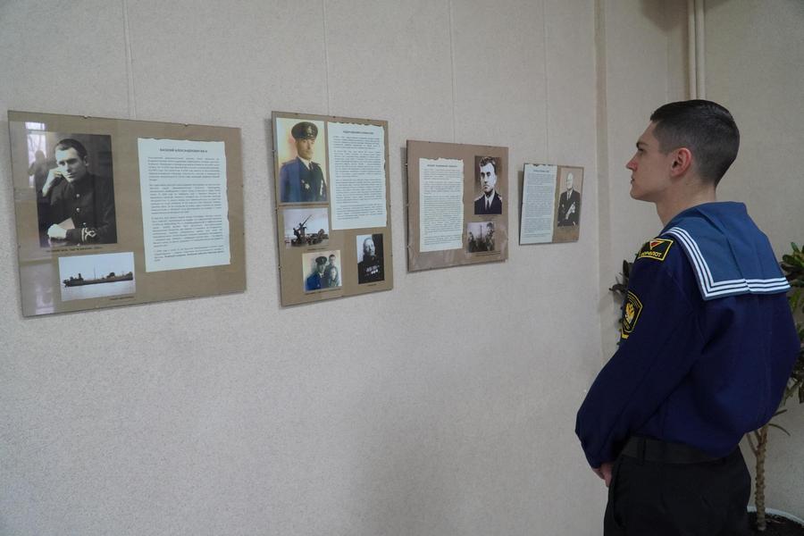 Раздел «Капитаны Победы» рассказывает о выпускниках МГУ им. Невельского, которые в годы Великой Отечественной войны командовали судами Дальневосточного морского пароходства. Здесь представлены 20 планшетов с фотографиями и биографическими материалами о тех, кто, окончив в 1920-х – начале 1930-х годов Владивостокский морской техникум, к началу войны стали капитанами и включились в перевозку необходимых для страны грузов. Среди них знаменитые Николай Артюх, Михаил Бабиевский, Арнольд Кремс, Павел Куянцев, Анна Щетинина и другие.