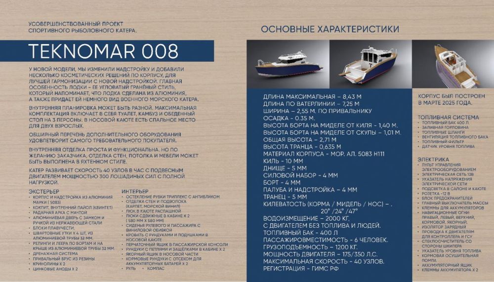 В арсенале находкинской судоверфи имеется еще несколько современных проектов катеров, которые она намерена реализовать в ближайшее время. Сфера применения новых плавсредств самая разная: начиная от любительской рыбалки и заканчивая промышленными целями. Предлагаем их модификации и тактико-технические данные.