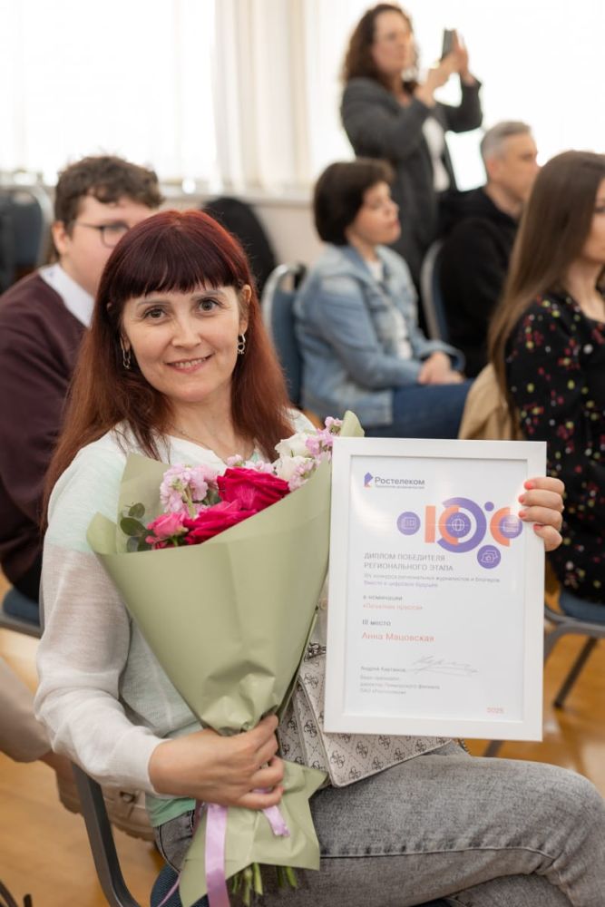 Речь идет о журналисте Анне Мацовской, которая в этом году отметит десятилетний юбилей работы в деловом еженедельнике «Конкурент». Она вошла в тройку лидеров регионального этапа конкурса «Вместе в цифровое будущее», в номинации «Печатная пресса». Итоги были подведены в торжественной обстановке 30 мая организатором мероприятия – национальным провайдером «Ростелеком».