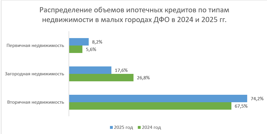 Малые города Дальневосточного федерального округа также следуют в общем тренде увеличения доли ипотечных программ с господдержкой. В 2024 году на них приходилось 60,3% объема от всех жилищных кредитов, за первую половину 2025 года этот показатель достиг 74%.