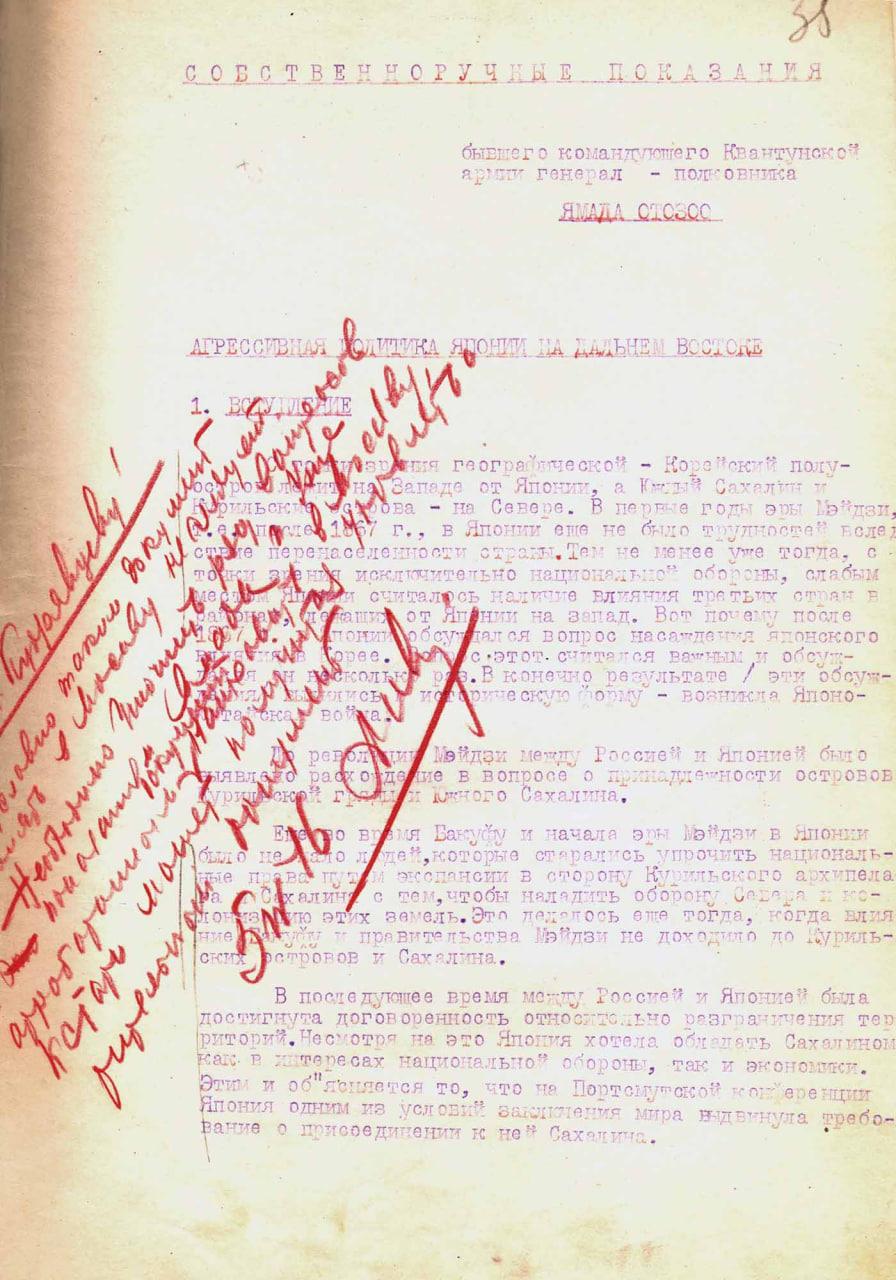 ФСБ России обнародовала ранее засекреченные архивные материалы, в которых раскрываются подробности подготовки Японией нападения на Советский Союз в период Второй мировой войны. Основной массив материалов занимают показания и протоколы допроса бывшего командующего Квантунской армией генерала Отодзо Ямады. По его сведениям, милитаристы планировали захватить Приморье и развязать против СССР бактериологическую войну.