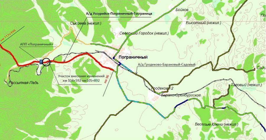 Трасса Уссурийск – Пограничный – Госграница ведет к государственной границе с Китаем и автомобильному пункту пропуска «Пограничный», который также находится на реконструкции.