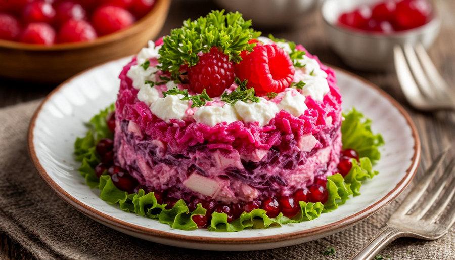 Этот салат был вершиной кулинарной эстетики и доступности. Яркий, многослойный, он выглядел как настоящий новогодний цветок на столе. Все его компоненты – консервированная рыба (сайра или горбуша), отварные овощи, лук, яйца и майонез – хоть и были по отдельности дефицитом, но вместе их удавалось «достать».