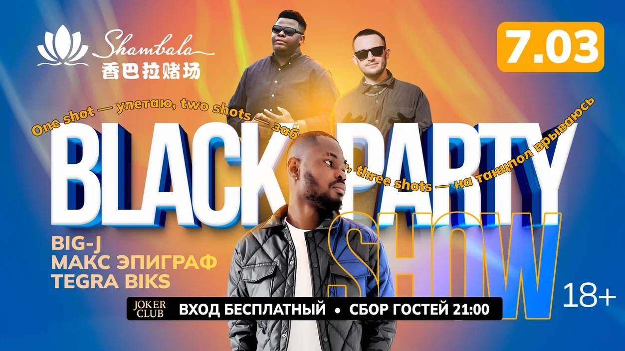 Главная весенняя вечеринка года соберет на одной сцене трех харизматичных артистов: Tegra Biks, Макса Эпиграфа и Big-J. Их хит «Если ты устал» уже покорил танцпол «Шамбалы» в январе, и теперь трио возвращается, чтобы взорвать зал мощной энергией накануне главного женского праздника.