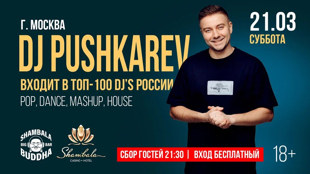 21 марта, 21:00 – DJ Pushkarev