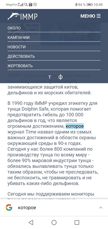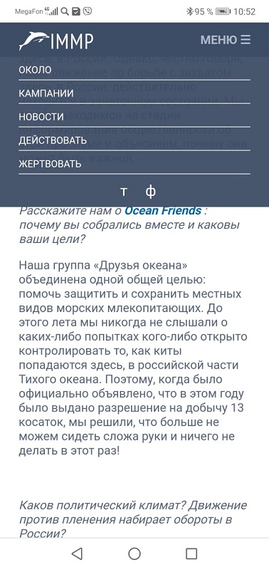 В каждой из стран активно идет кампания по спасению китов, тунцов. Так, организация IMMP на своем сайте указывает проведение пяти кампаний. Например, тунцеловная кампания, хотя позиционируется она как спасение дельфинов. Суть проста: мексиканский, венесуэльский и колумбийский флот якобы губит тысячи дельфинов. И здесь организация прямо указывает, что известная мировая сертификационная организация «Морской попечительский совет» ошибочно сертифицировала промысел тунца, выдав Мексике марку тунца «безопасный дельфин».